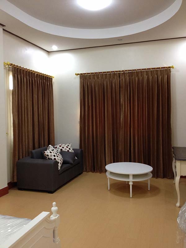ม่านจีบนอกจากจะสวยงามแล้ว ลอนของผ้าม่านยังช่วยกันแสงได้ดีอีกทั้งรางผ้าม่านที่ใช้กับม่านจีบจะมีอุปกรณ์ที่เรียกว่า “สไลด์” ที่ช่วยให้ผ้าม่านซ้อนกันได้สนิทเมื่อเวลาปิดผ้าม่าน โดยส่วนใหญ่นิยมใช้คู่กับรางลูกล้อที่ช่วยให้เปิดปิดผ้าม่านได้ลื่นและสะดวกสำหรับผ้าม่านทุกไซส์